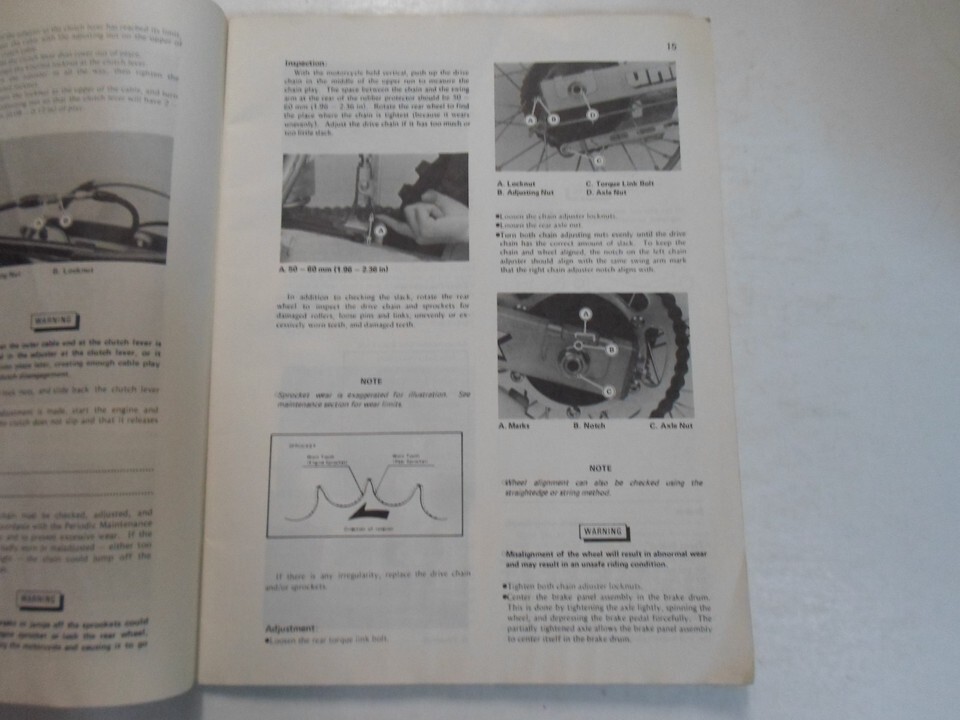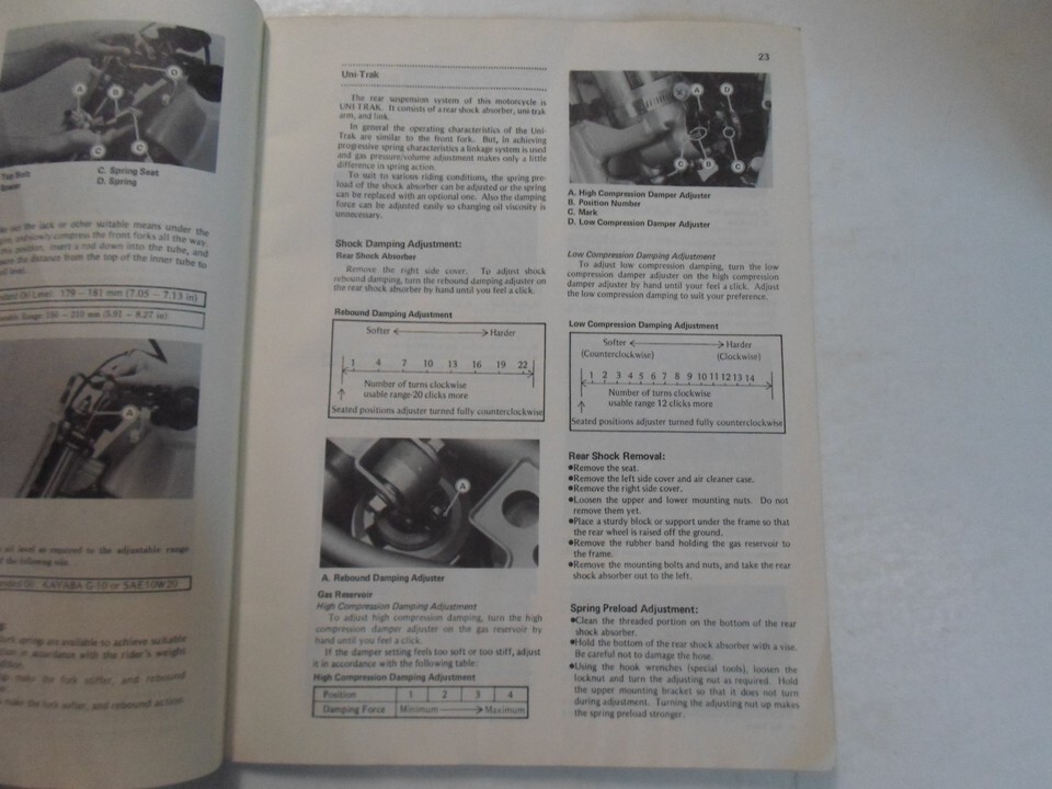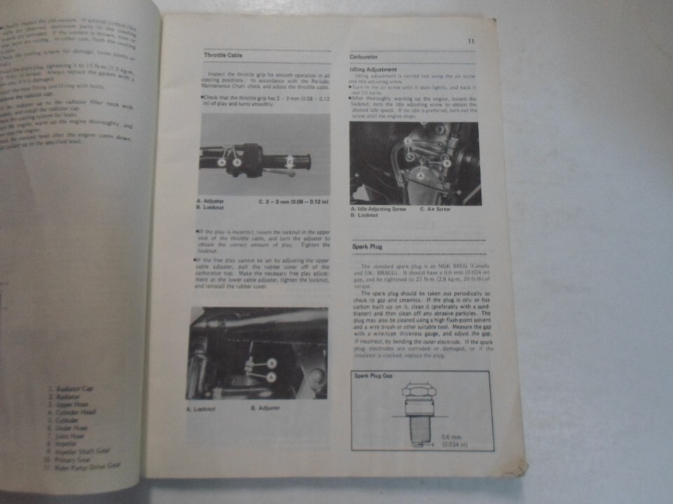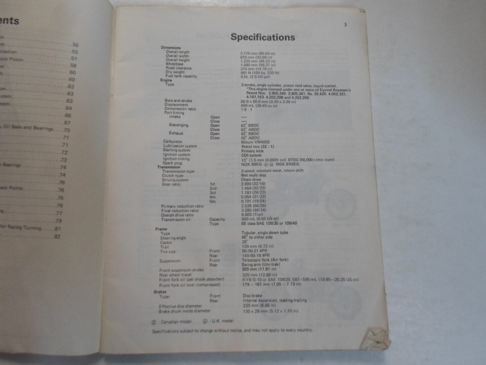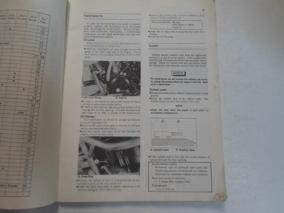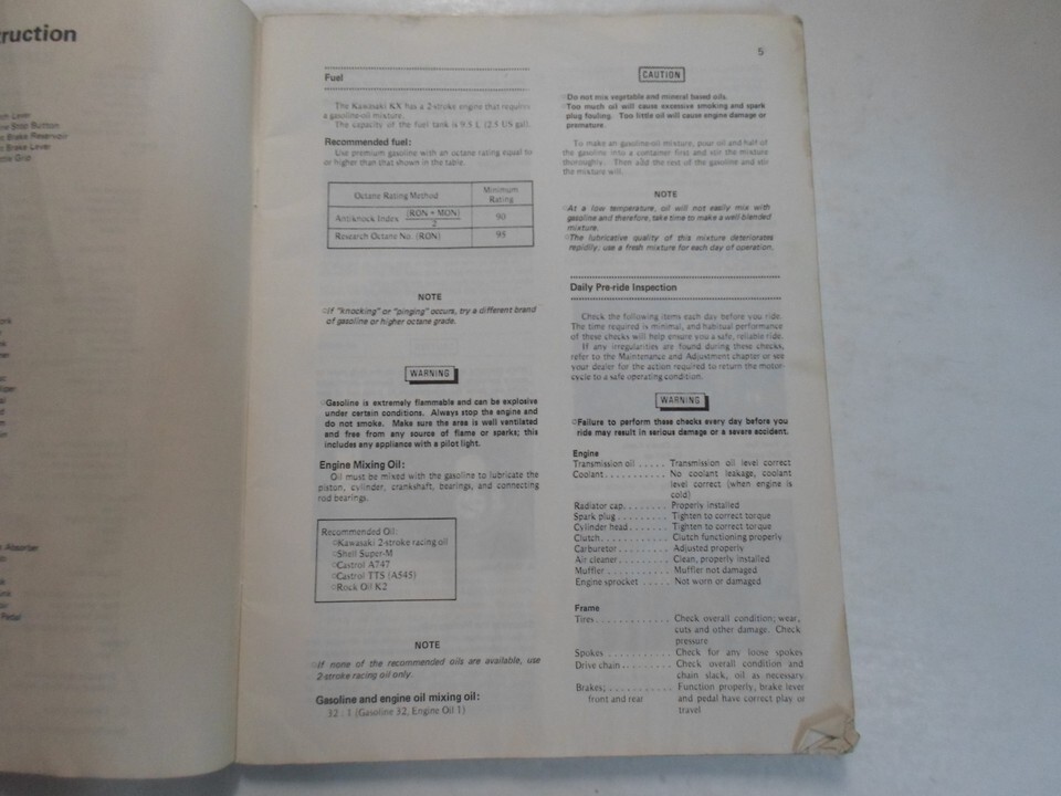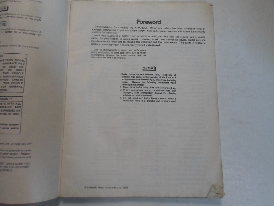 1985 KAWASAKI KX500 PROPRIETAIRES DE MOTOS ET MANUEL D'ENTRETIEN TACHES USEES ENDOMMAGEES PAR L'EAU