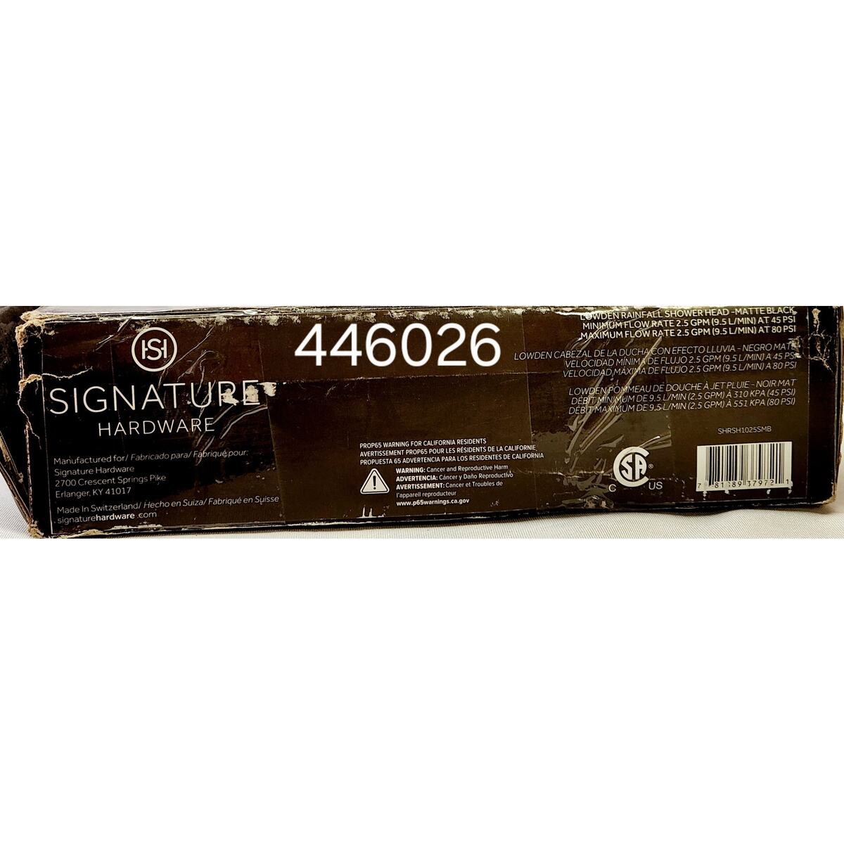Thank you for visiting! All orders are shipped for FREE within the United States. For international sales, shipping costs will be added to the purchase price. Please contact us with your shipping address for a parcel quote. Orders before 2PM CST will be shipped the same day. Our items have never been installed and are sold as open-box products, unless otherwise noted. While the boxes may have slight damage, as shown in the pictures, the items themselves are carefully inspected to ensure they are not damaged or missing any pieces. We accept returns on items that have not been installed or damaged within 14 days of your purchase. In the rare event that an item is defective upon installation or has any blemishes not previously stated in the description, we will discuss a refund or exchange. Please, reach out if you have any issues that need to be addressed. Our goal is to achieve complete customer satisfaction. We appreciate you viewing this listing and look forward to serving you. Signature Hardware 446026 Lowden Single Function 2.5 GPM Shower Head - Matte Black Featuring clean lines and a square shape, the Lowden Rainfall Shower Head brings modern style and luxury to your space. Dozens of nozzles deliver a soothing, rain-like spray for a refreshing and effective rinse. Made of metal and boasting a smooth, corrosion-resistant finish, this item promises lasting durability. Constructed of brass ensuring durability and dependability Single function shower head Designed to easily install with standard us plumbing connections Shower head width 10-in (left to right) Flow rate 2.5 gallons-per-minute
