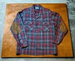 UP FOR SALE: VTG 1950s-60s Pendleton Wool Board Shirt Red Plaid with a Sport Style Looped Top Button Collar, Two Flap Pockets and a Straight Bottom in a Mens Medium Size.