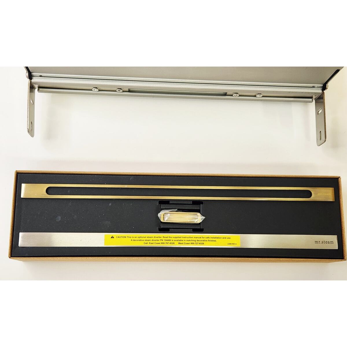 Thank you for visiting! All orders are shipped for FREE within the United States. For international sales, shipping costs will be added to the purchase price. Please contact us with your shipping address for a parcel quote. Orders before 2PM CST will be shipped the same day. Our items have never been installed and are sold as open-box products, unless otherwise noted. While the boxes may have slight damage, as shown in the pictures, the items themselves are carefully inspected to ensure they are not damaged or missing any pieces. We accept returns on items that have not been installed or damaged within 14 days of your purchase. In the rare event that an item is defective upon installation or has any blemishes not previously stated in the description, we will discuss a refund or exchange. Please, reach out if you have any issues that need to be addressed. Our goal is to achieve complete customer satisfaction. We appreciate you viewing this listing and look forward to serving you. Mr Steam 104480BB Linear 16" Steamhead with Aroma Therapy Reservoir - Brushed Bronze Award winning, whisper quiet 16 inch Linear SteamHead matches any design style. Mounts flush to the wall, and creates a wide ribbon of smoothness that brings a new level of performance and aesthetic pleasure to your steam shower. Now includes, an aroma oil well in designer finish trim, and steam diverter. A series of patented interior baffles delivers whisper quiet billowing steam Slender, horizontal opening disperses steam evenly and smoothly Decorative trim in designer finish pushes in place and is held with silicone/friction Aroma oil tray in neutral finish attaches to the steam head with or diverter is included Stainless Steel diverter can be used to reduce the steam emission if desired is included Fits between 16" on center 2' x 4" studs