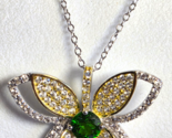 - Designer 925 Sterling Silver Butterfly Pendant Emerald & Pave Diamond 18"