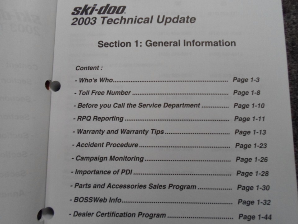2003 SKI-DOO MANUEL DE MISE A JOUR TECHNIQUE