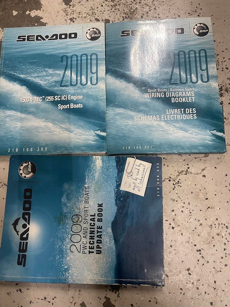 Manuale di officina riparazioni per assistenza modelli Sea-Doo 4-TEC 2009 OEM 219100380, libro di aggiornamento tecnico e manuale dello schema elettrico