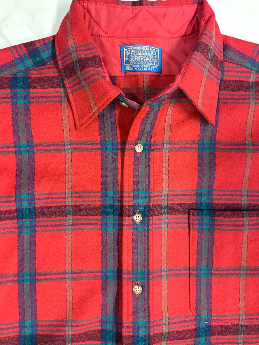 - VTG 60s Pendleton Red Plaid Wool Flannel 1 Pocket Shirt Large UNUSED