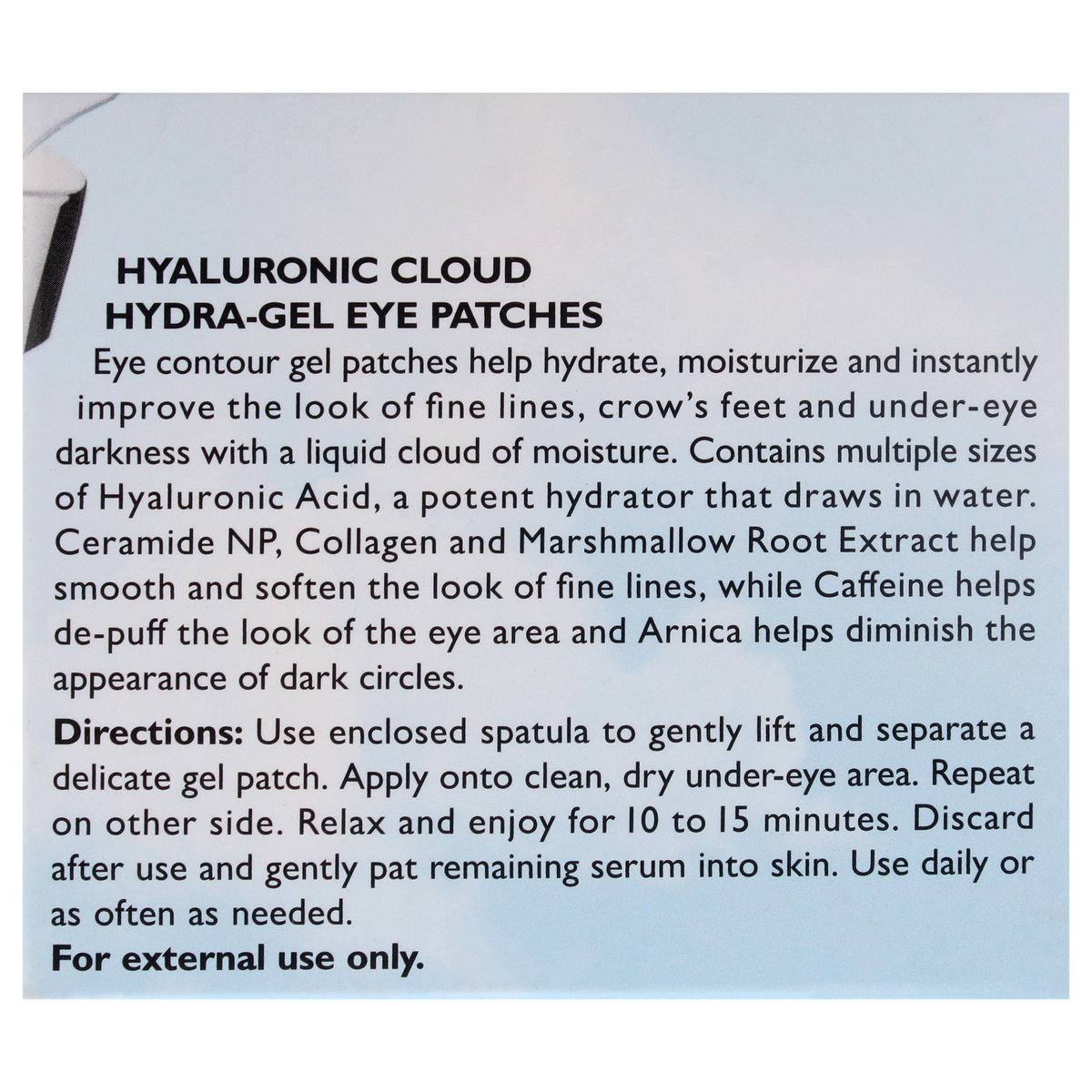 Eye contour gel patches help hydrate, moisturize and instantly improve the look of fine lines, crows feet and under-eye darkness with a liquid cloud of moisture. Contains multiple sizes of hyaluronic acid, a potent hydrator that draws in water. Ceramide np, collagen and marshmallow root extract help smooth and soften the look of fine lines, while caffeine helps de-puff the look of the eye area and arnica helps diminish the appearance of dark circles.