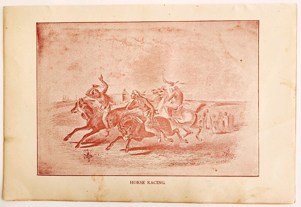 1891 Horse Racing Native Americans Plate Print Victorian Indian Wars History F6H
