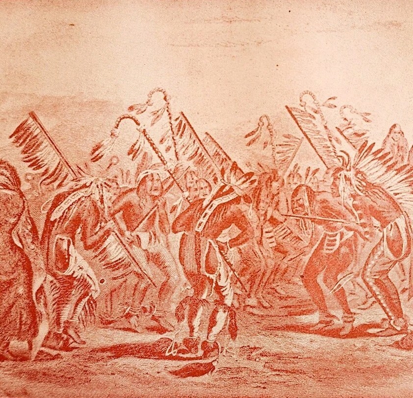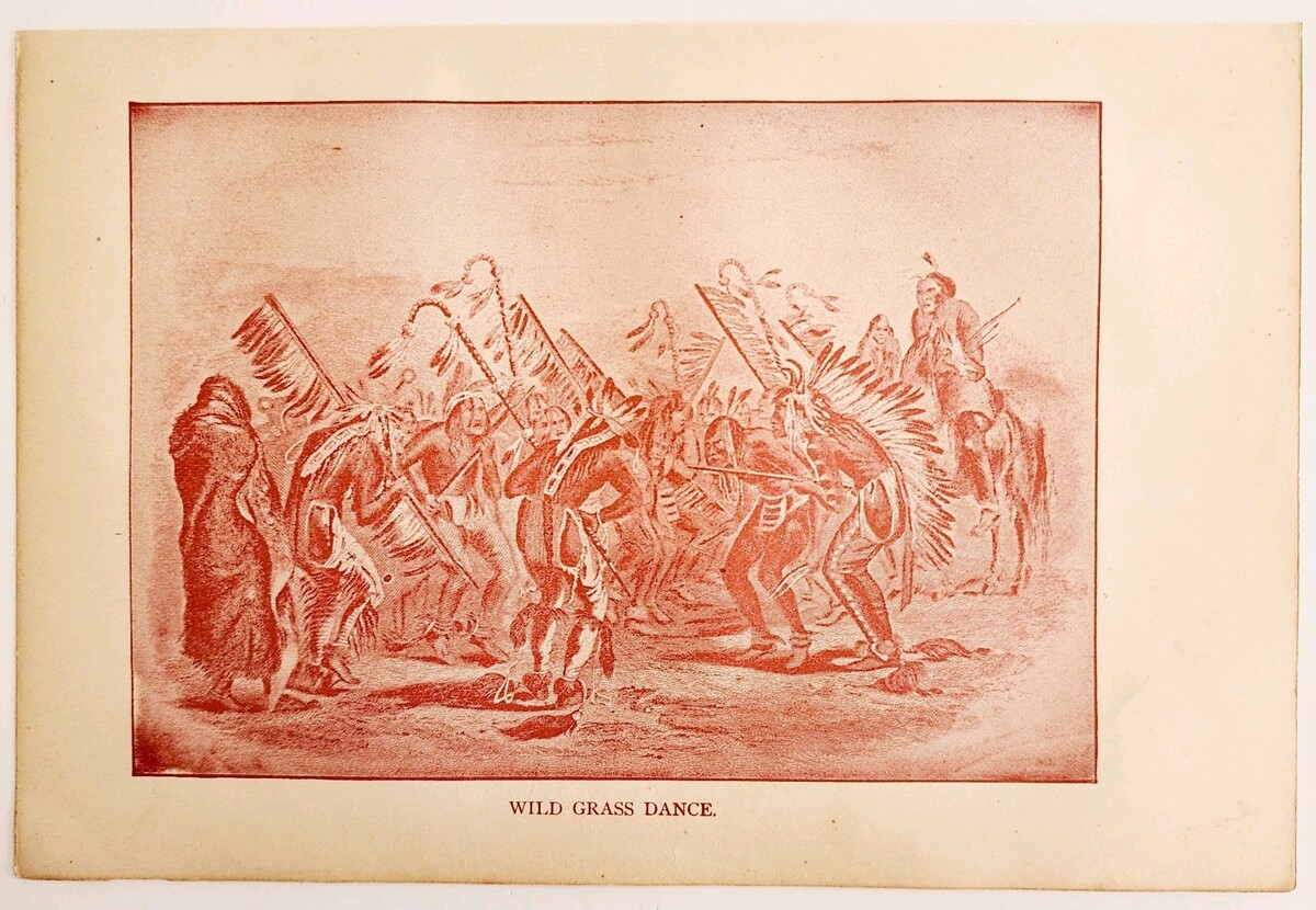 1891 Sioux Wild Grass Dance Red Plate Print Victorian Indian War History F6G