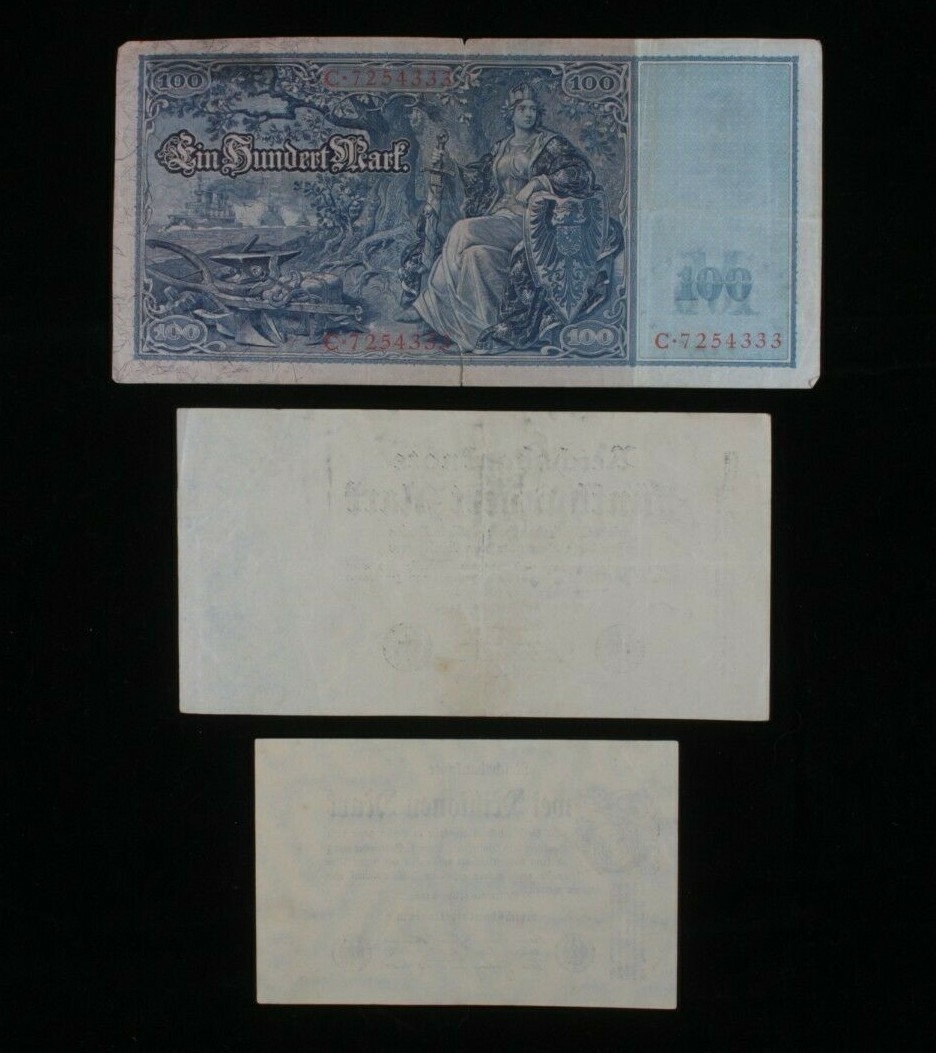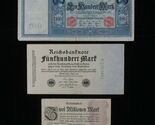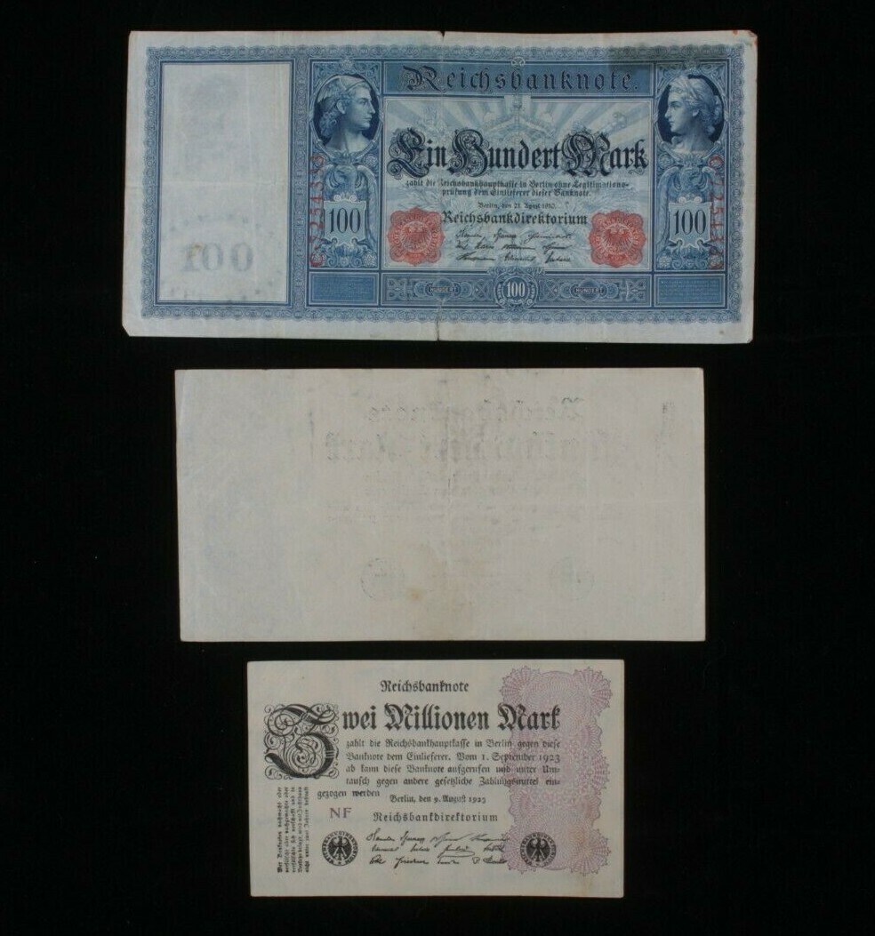 1910-1923 Germania 3 banconote // Impero tedesco 100 marchi e 500 Weimar e 2 milioni di marchi