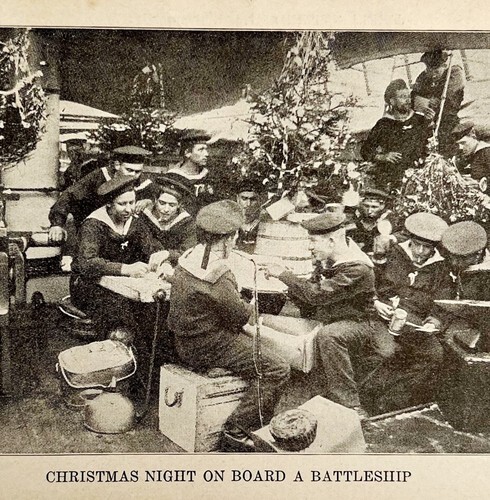 1914 WW1 Print Christmas On A Battleship Antique Military Period Collectible