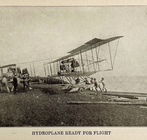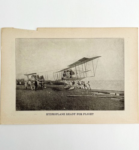 1914 WW1 Print Hydroplane Ready For Flight Aviation Antique Military Collectible
