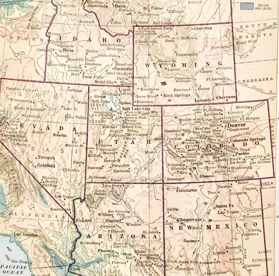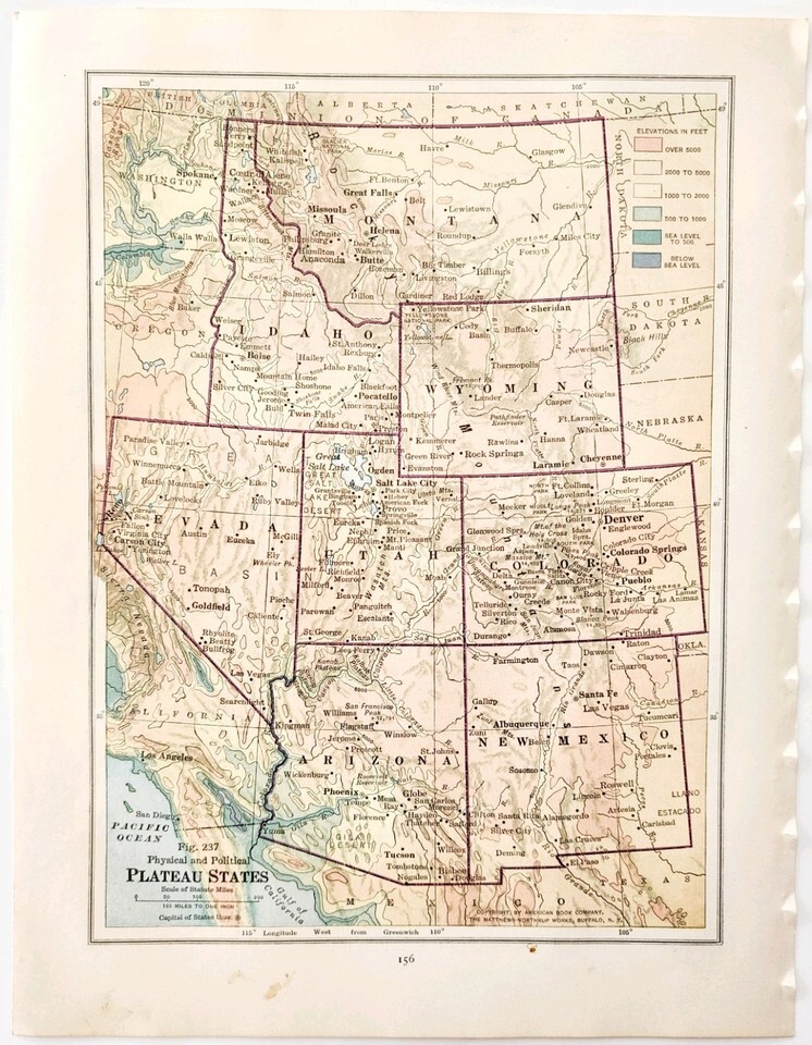1916 Map Plateau States USA Montana Idaho Utah Arizona New Mexico Nevada DWSS9