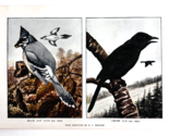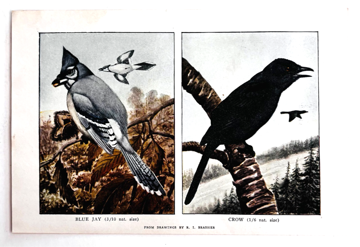 1927 Blue Jay And Crow Corvids Bird Art Plate Color Book Print Wildlife F14C