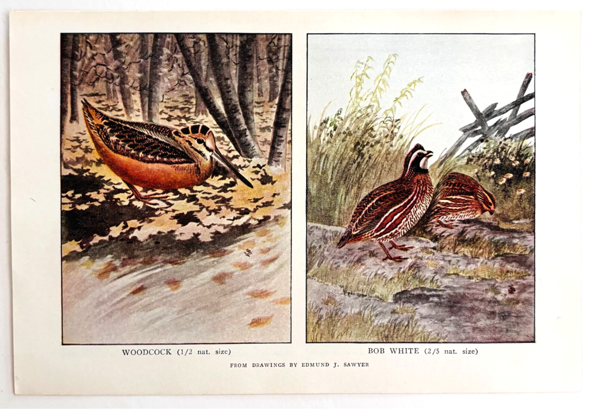 1927 Woodcock And Bob White Bird Art Plate Color Book Print Wildlife F14C