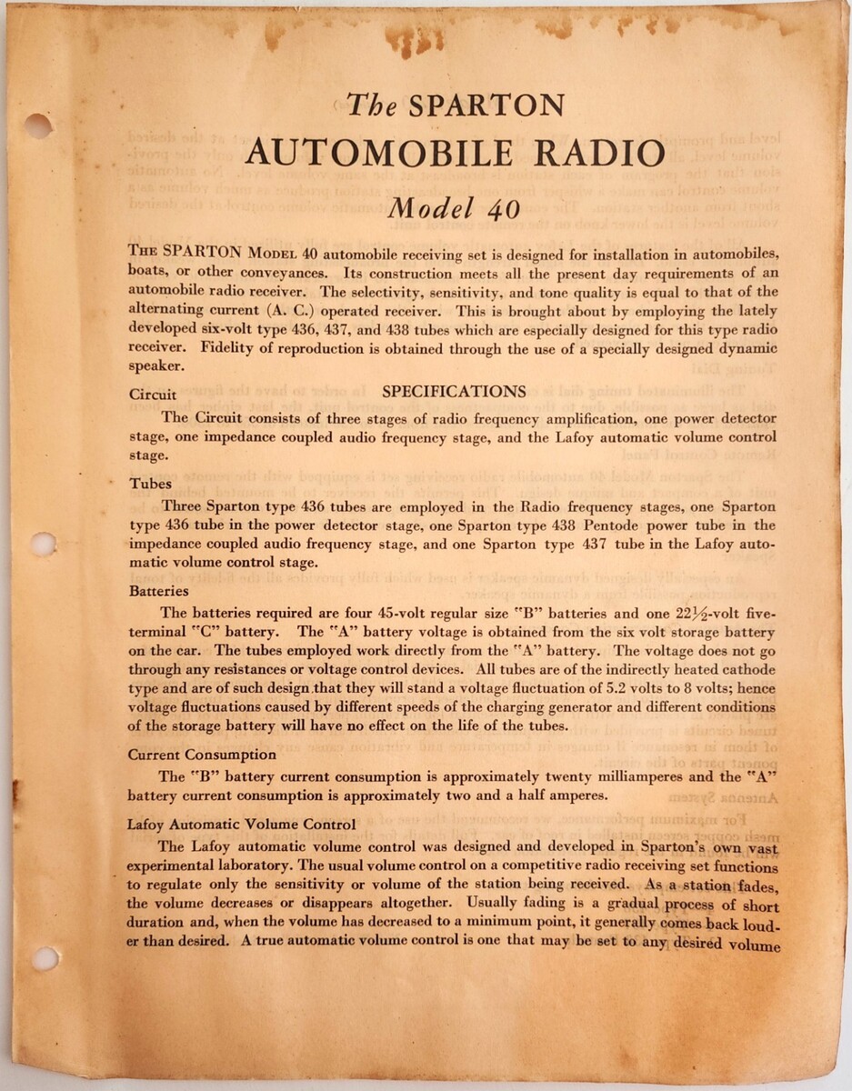 1931 Sparton Automobile Radio Model 40 Info Advertisement Catalog Page F20B
