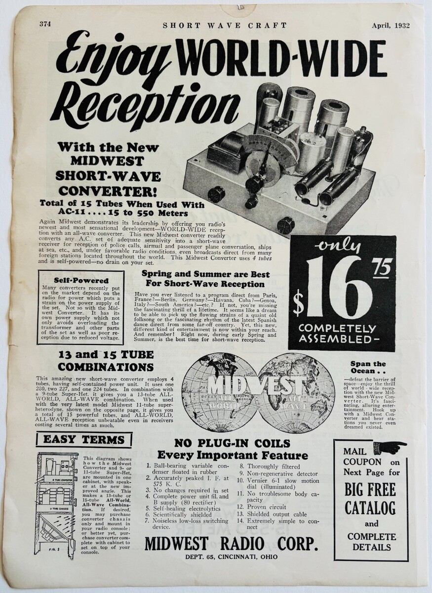 1932 Midwest Radio Corp Short Wave Converter Advertisement World Wide DWP9A