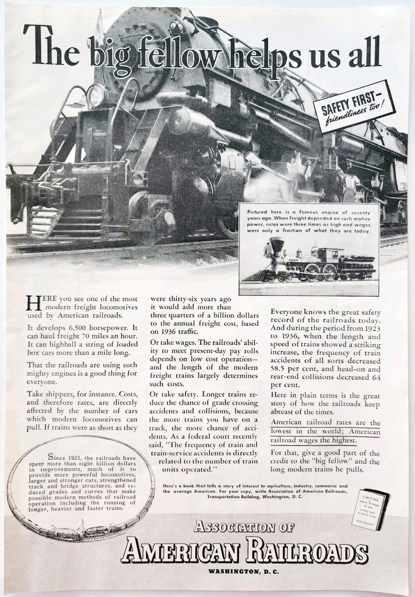 1937 Association Of American Railroads Advertisement Trains Railway DWQQ5