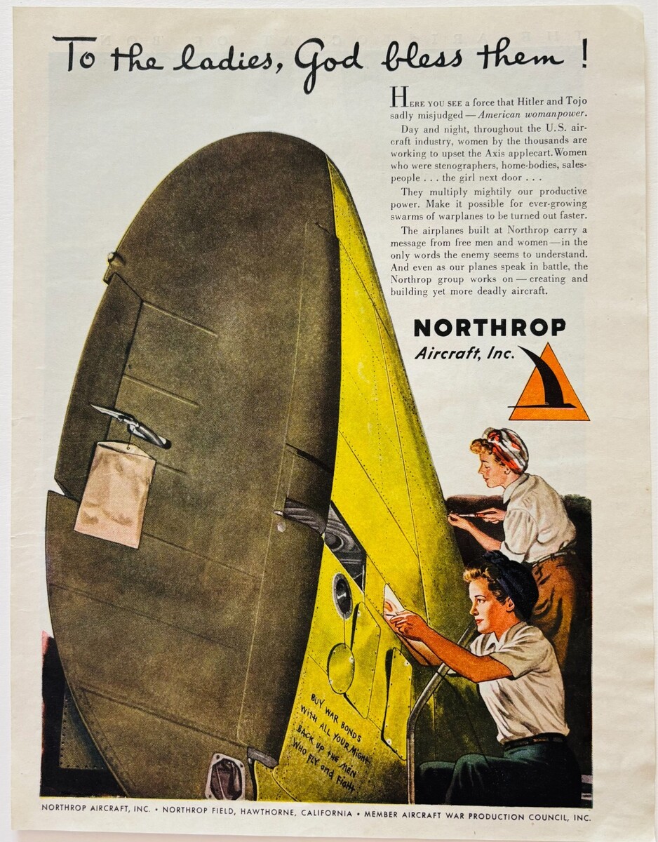 Primary image for 1944 Northrop Aircraft WW2 Advertisement Aviation Women Power War Planes E90E2