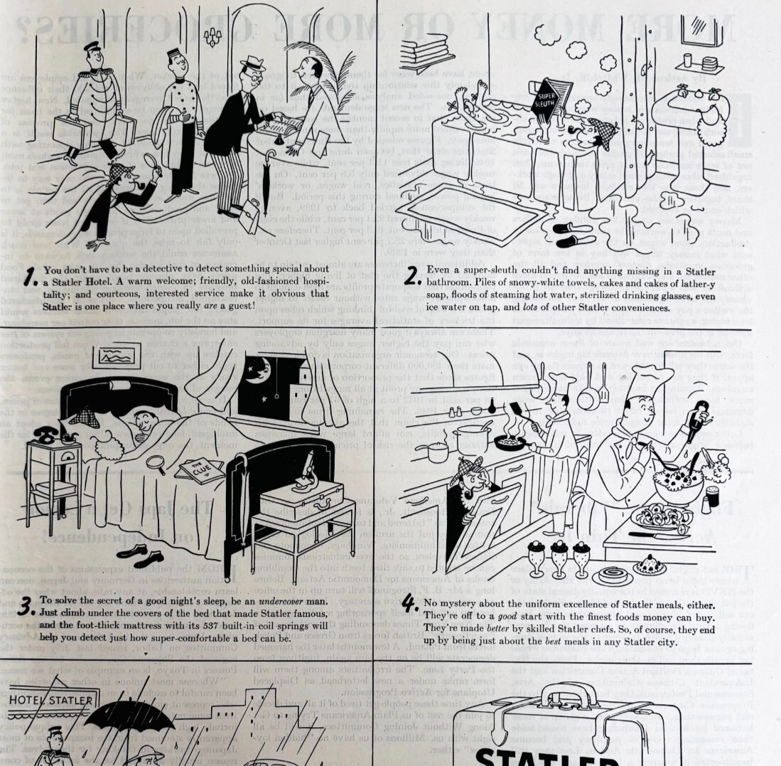 1947 Statler Hotel Advertisement Boston Buffalo Cleveland Detroit St Louis DWWW9