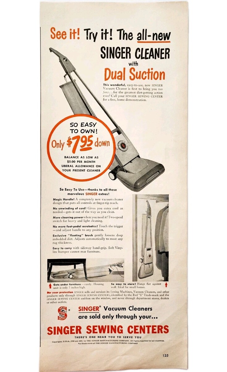 1950 Singer Sewing Dual Suction Vacuum Advertisement Vintage Appliance DWJJ9