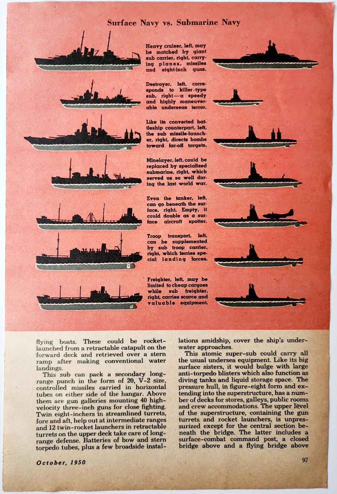 1950 Surface Navy Vs Submarine Navy Military Article Page War Ships DWF17