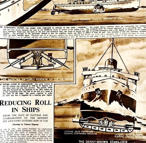 1952 Sperry Gyro Stabilizer Reducing Roll In Ships Nautical Page Sphere UK HM2CC
