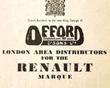 1954 Offord Renault Marque London Dealership Advertisement Automobilia E89G1