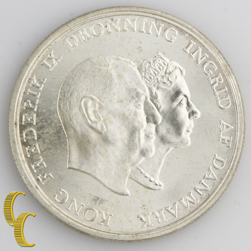 Obverse features a jugate bust of the king queen, facing right, with legend KONG FREDERIK IX DRONNING INGRID AF DANMARK *Condition descriptions are approximate. Please see photos for the actual item you are bidding on. All items are professionally packaged and shipped. All shipments include insurance and delivery confirmation or signature confirmation. Local Pick-up is available in our showroom. *The customs requirements for each country, including all import duties, taxes, and fees are the responsibility of the buyer. All international packages will have the required customs declaration and value of order. 9% sales tax will be added. We offer a 30 day money back return policy. If you are unhappy with your purchase for any reason, please notify us so that we can begin the returns proce