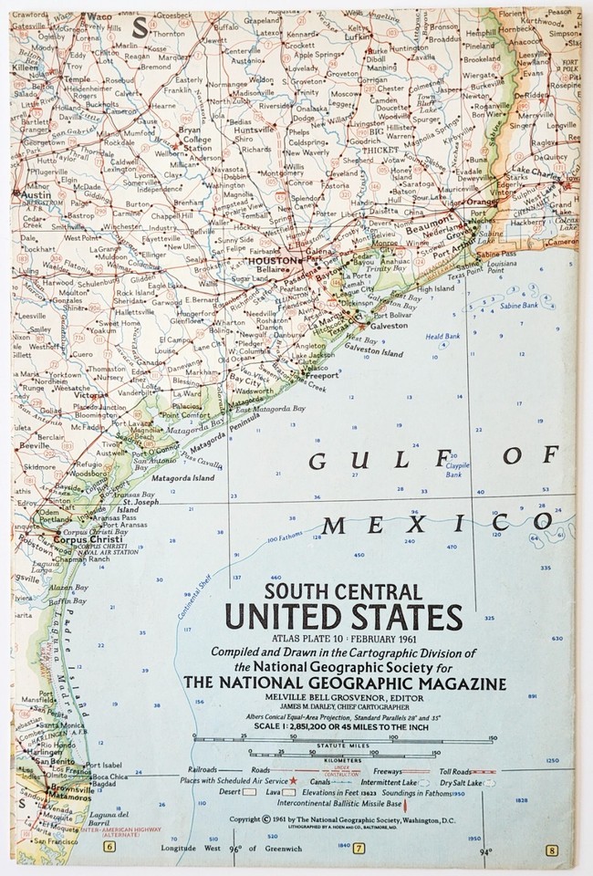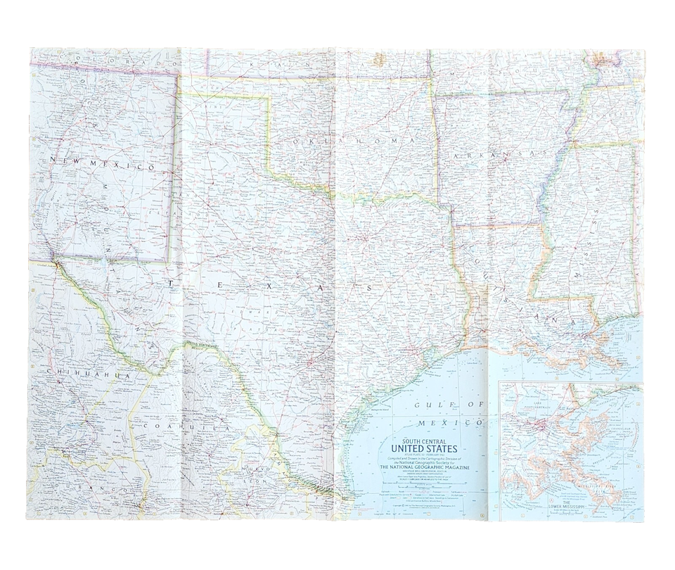 1961 South Central United States Map National Geographic 24.75 x 19" F13G