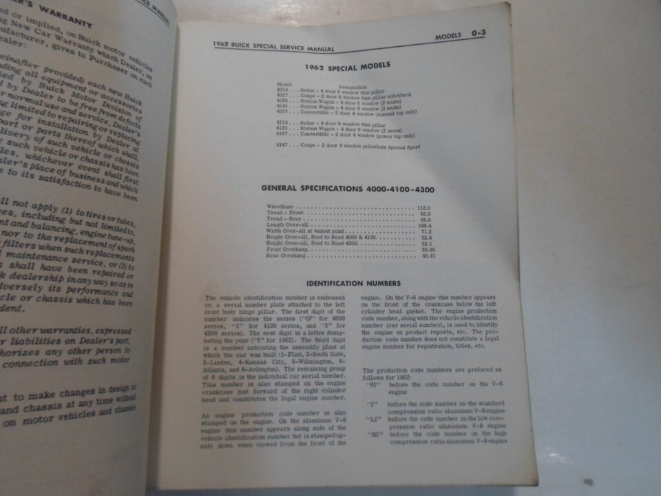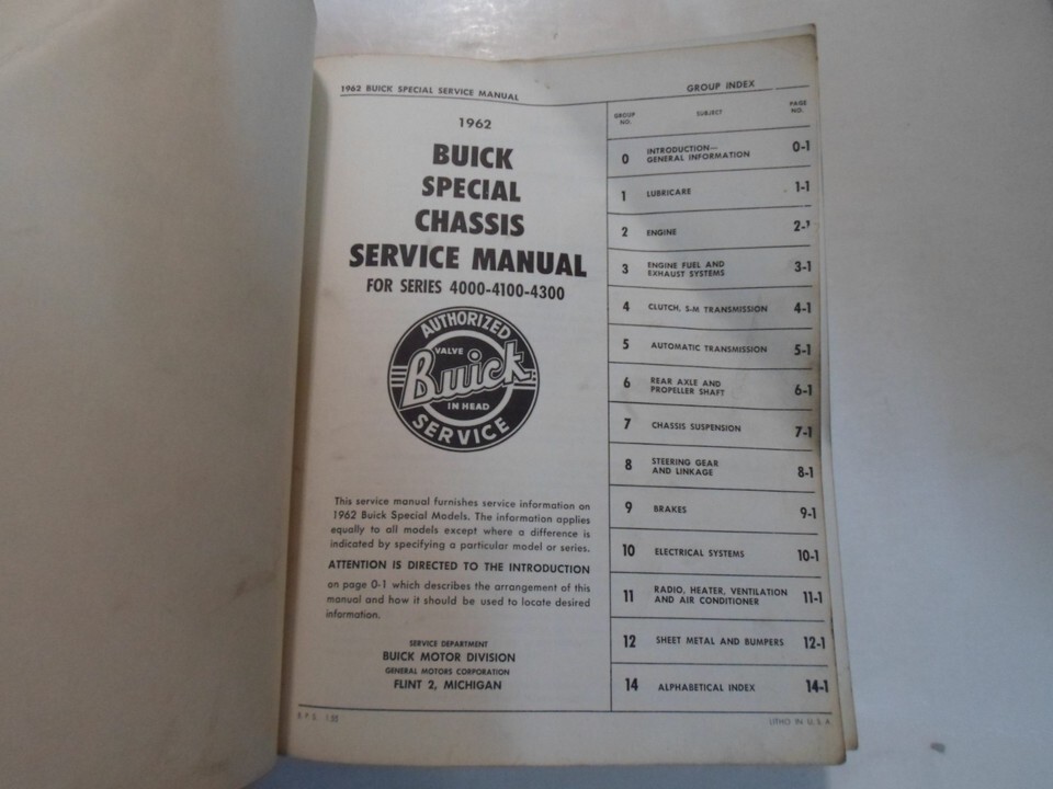 1962 Buick Special Chassis Service Atelier Reparation Manuel Vitrail Worn Usine