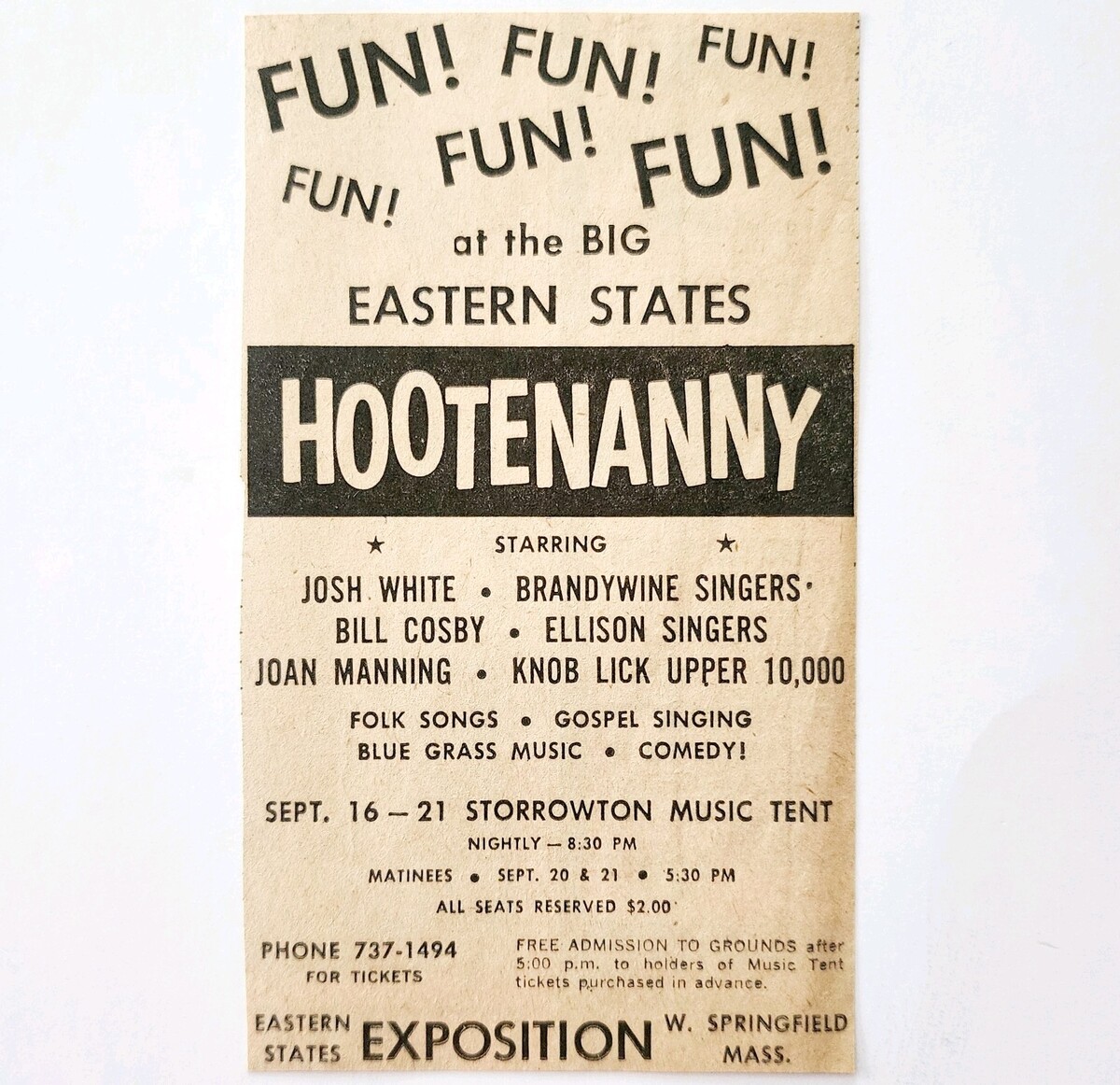 1963 Hootenanny Bill Cosby Appearance Advertisement Eastern States Expo DWJJ5