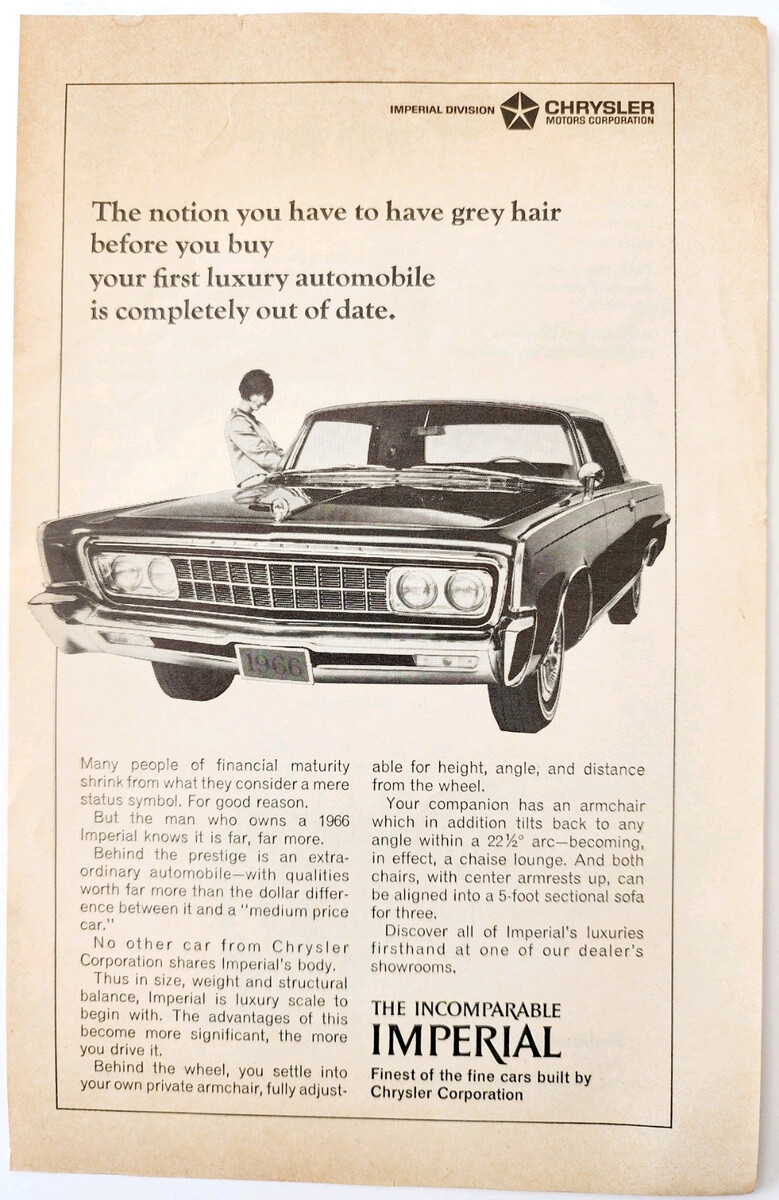 1966 Chrysler Imperial Car Advertisement Automobilia Classic Luxury DWQQ11