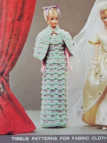 This is a vintage doll clothing wardrobe pattern book No 173 from Coats Clark, dating back to 1966. It includes a variety of teen Barbie fashions and is perfect for any craft enthusiast who enjoys crochet, knitting, or sewing.
