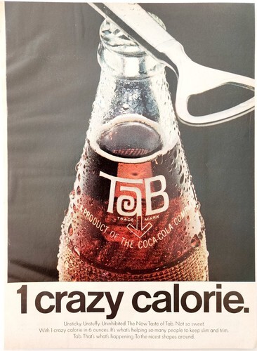 1966 Coca Cola Tab 1 Calorie Drink Advertisement Soda Pop Beverage DWLL9