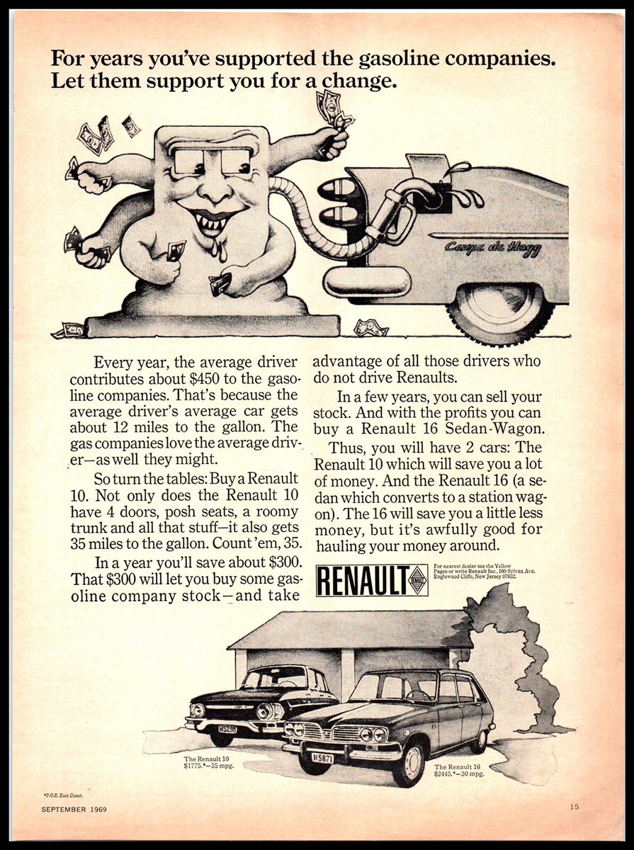 1969 Magazine Car Print Ad - RENAULT, Renault 10 & Renault 16 A7