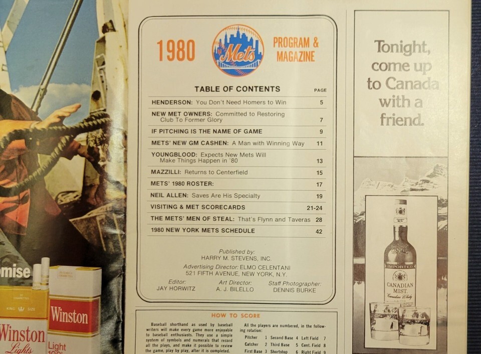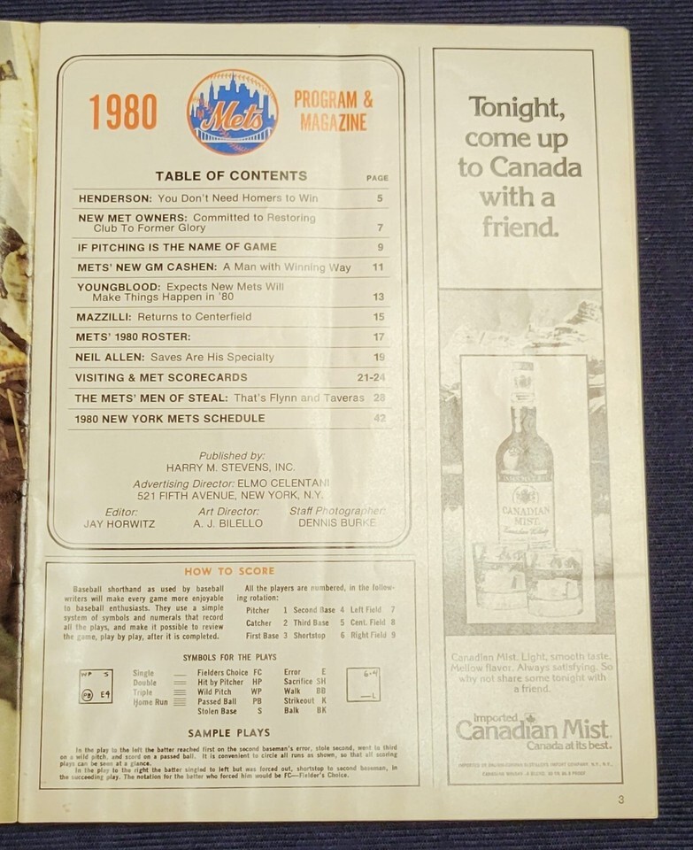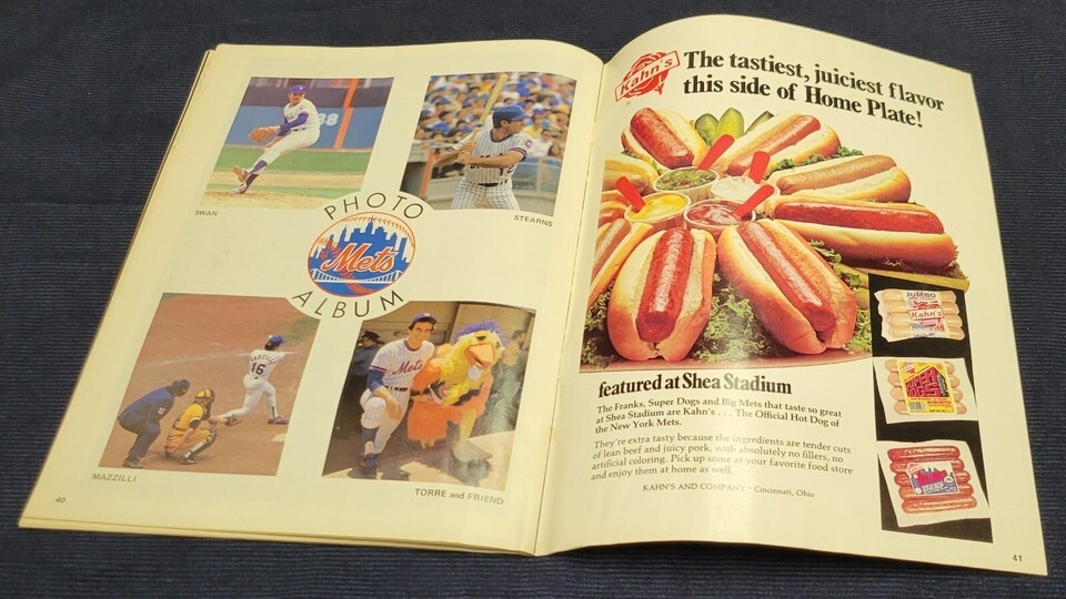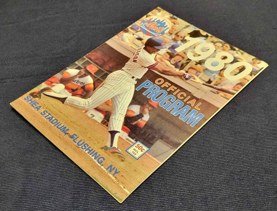 Official Program 1980 New York Mets vs Phillies Official Program Score Book Steve Henderson Shea Stadium Score book is in used condition with signs of age and storage including some very slight water damage stain and wrinkle. It is fully intact and readable with no major rips, tears, or missing pages. Score card has been scored therefore written on, but no other writing in the book.