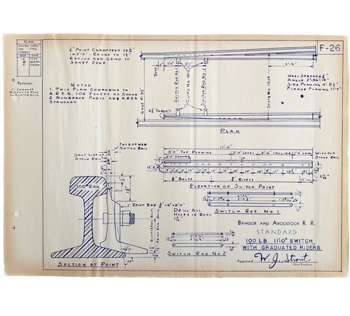 1950s Carbon Blueprint (revised 1980) approved and signed by Chief Engineer W.J. Strout (carbon transfer).