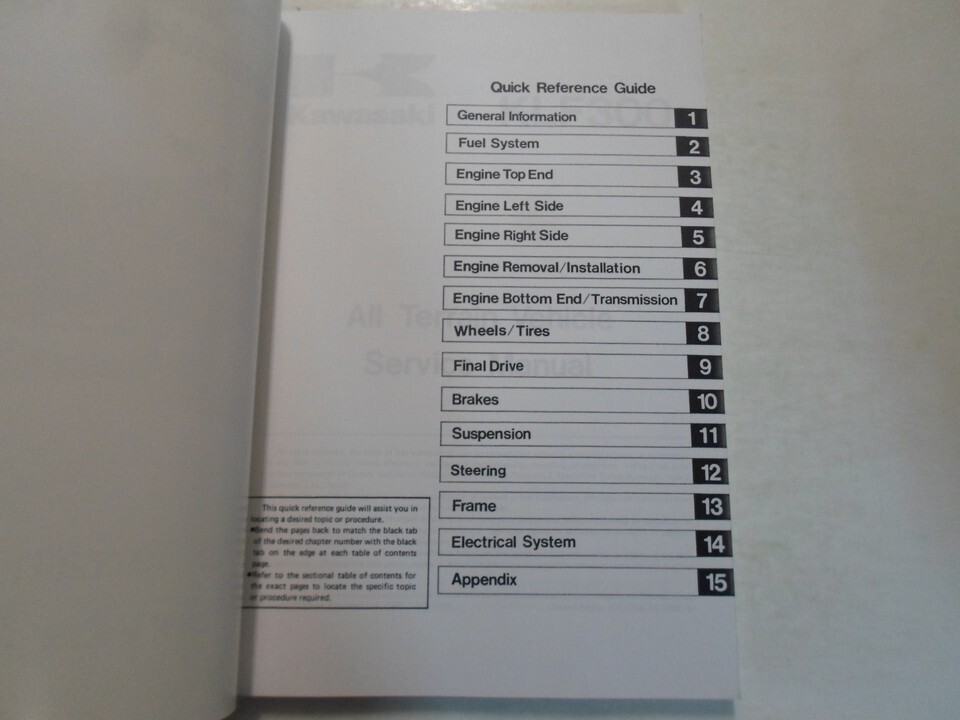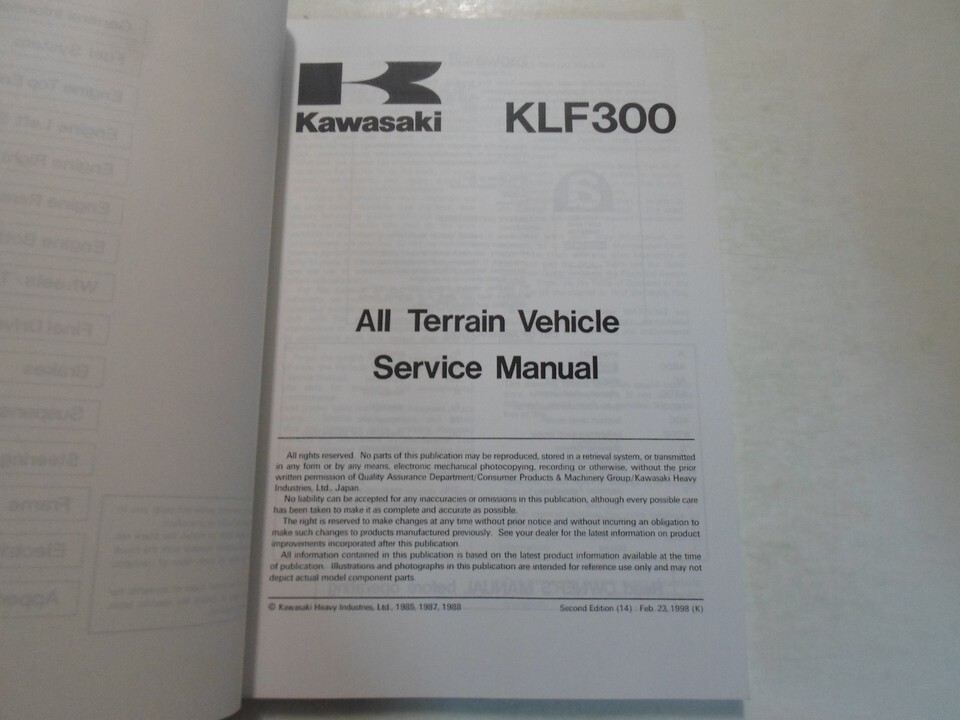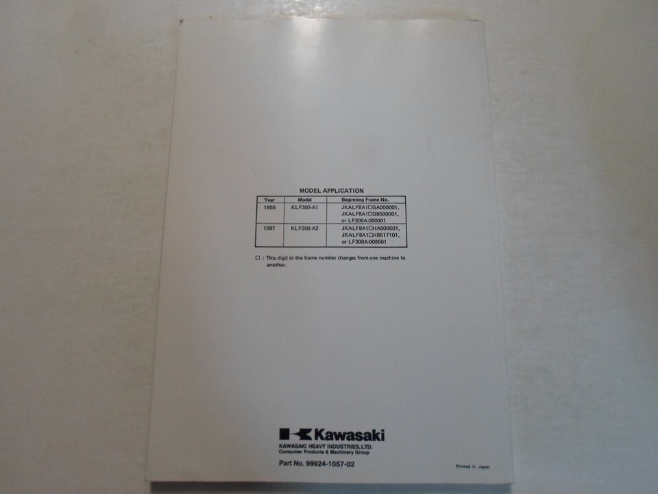 1986-1987 KAWASAKI KLF300 MANUEL D'ATELIER DE REPARATION DE SERVICE DE VEHICULE TOUT TERRAIN