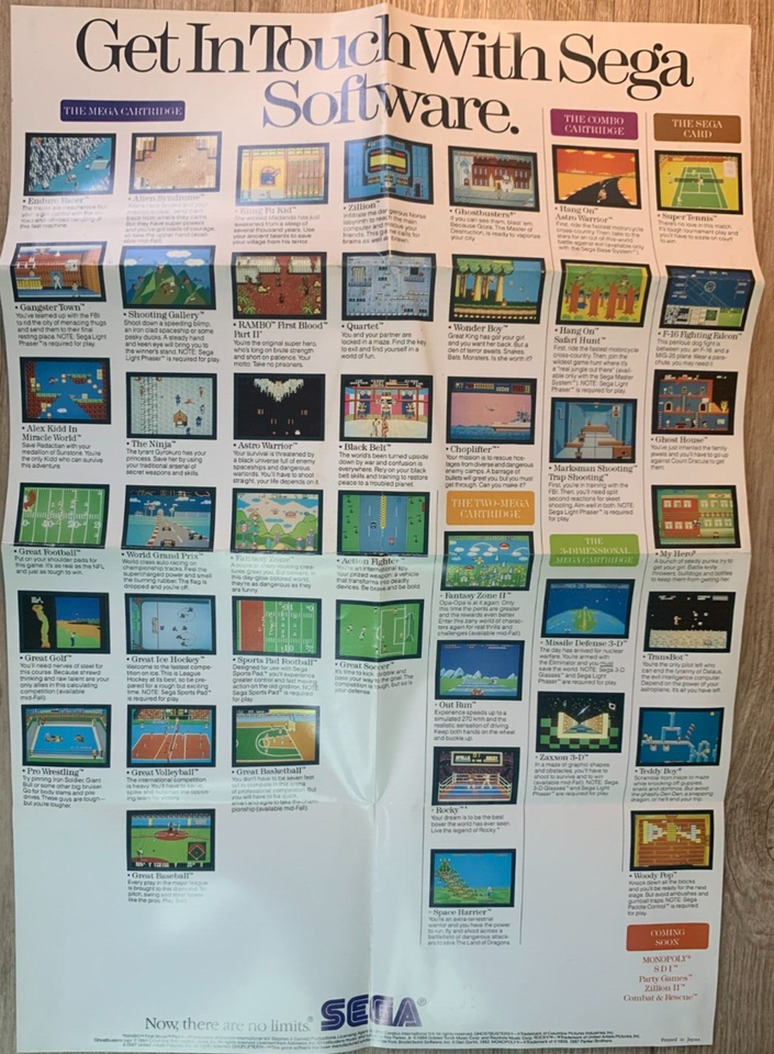 - 1987 SEGA Take Hold of the SEGA Adventure Master System Insert Promo Poster