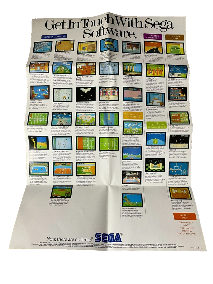 1987 Sega Master System Poster: 17X11.5: Vintage, Retro, Collectible Video Games