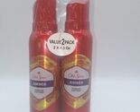 2 Old Spice Amber Deodorant Body Sprays 4.3 Ounces Each. New 24 Hr Fresh 0% Gas