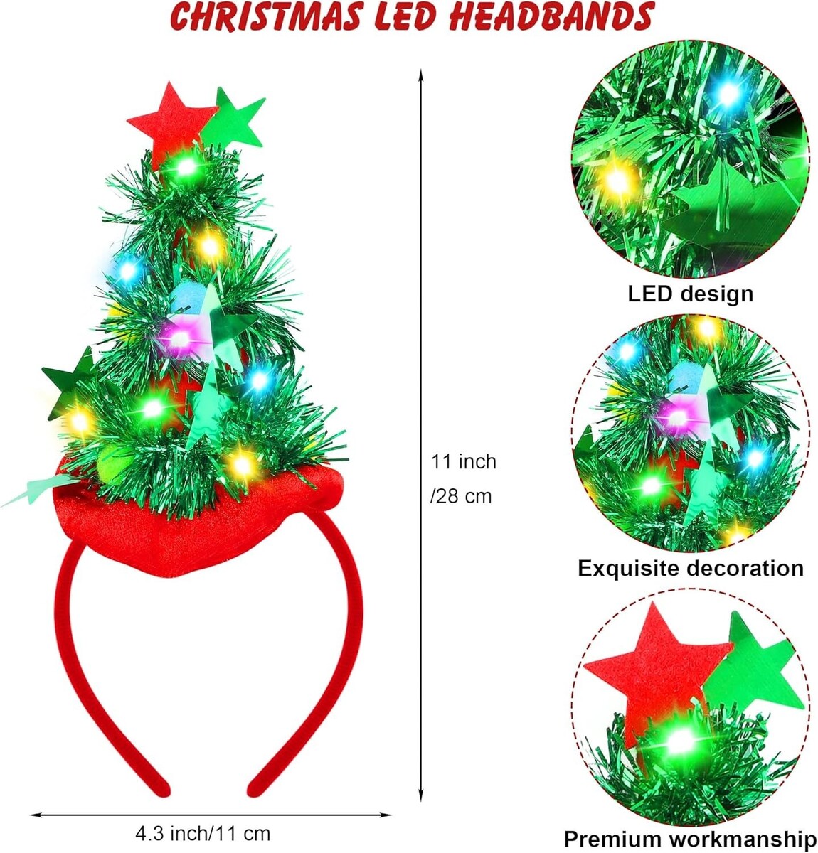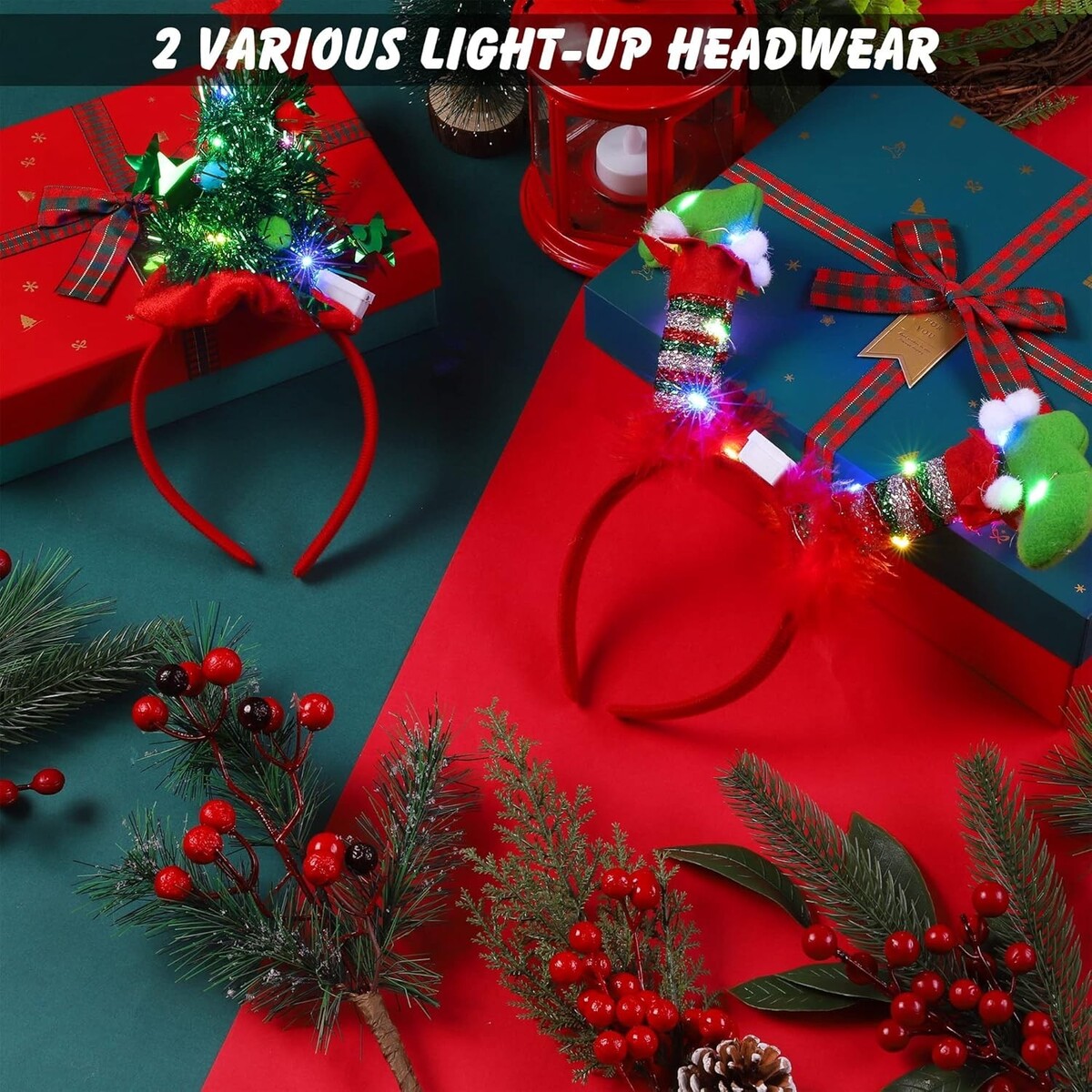 - 2 Pack Christmas LED Headbands Xmas Headbands Light Elf Leg, Spiral Xmas Tree