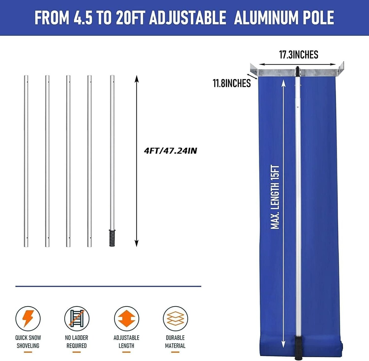 20 Feet Telescoping Aluminum Snow Rake with 17' Blade ? Effortless Snow Removal
