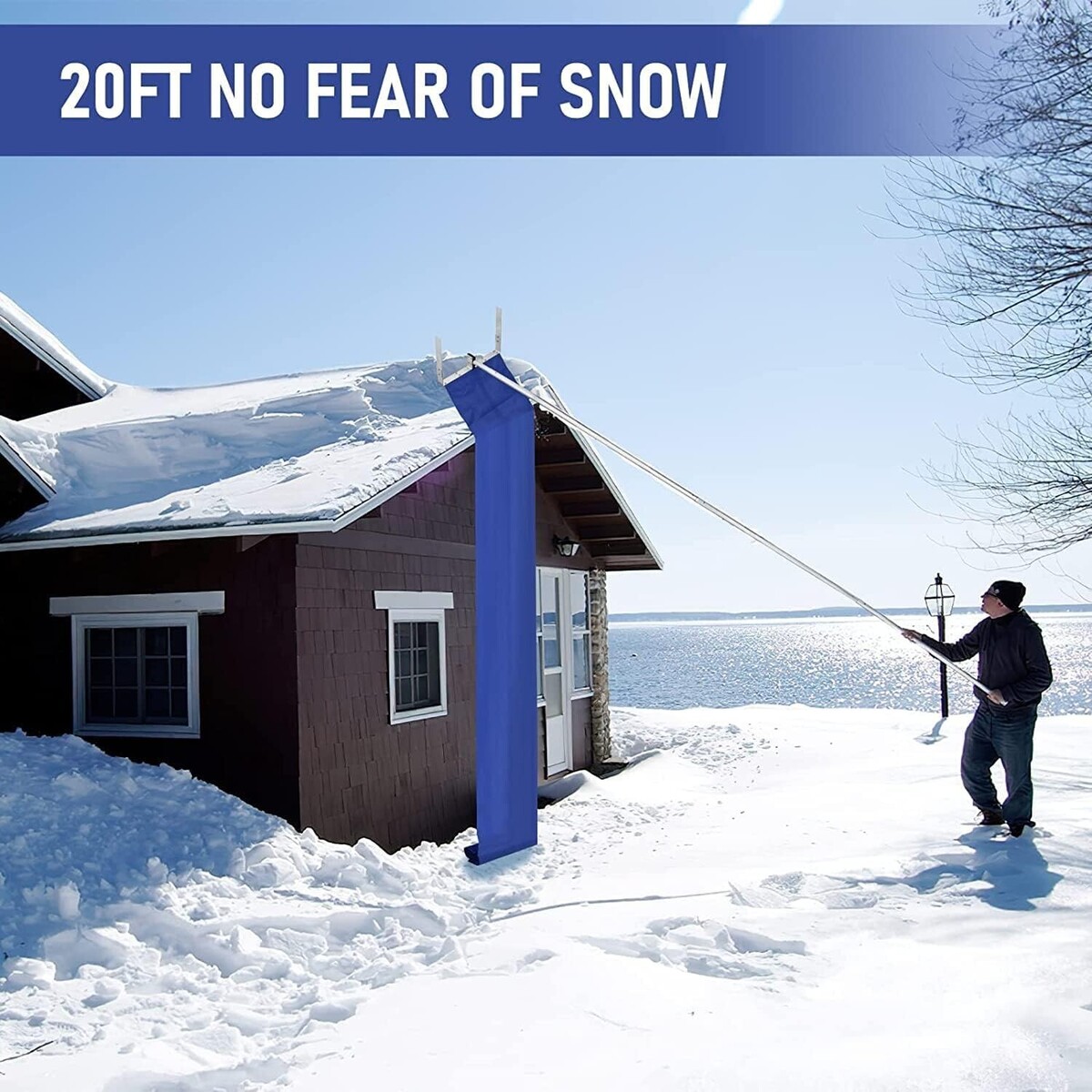 - 20 Feet Telescoping Aluminum Snow Rake with 17' Blade – Effortless Snow Removal