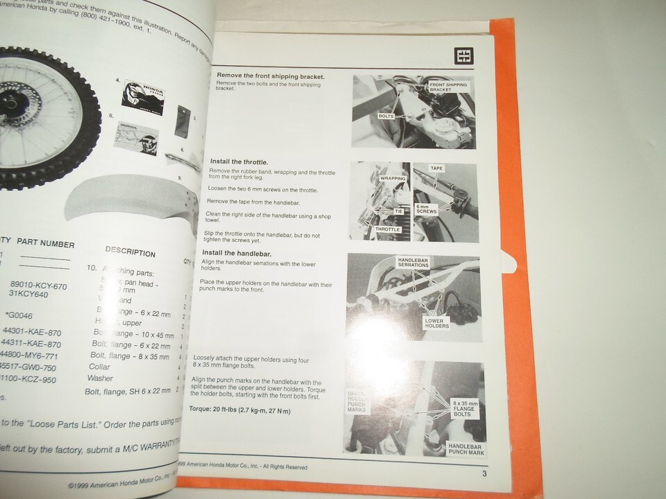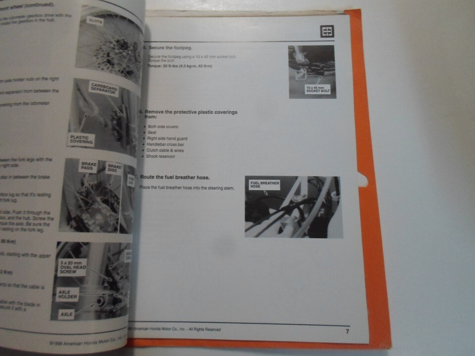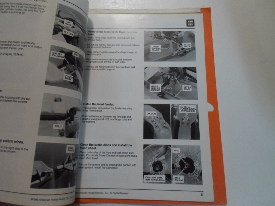 2000 Honda XR400R Instructions de configuration Manuel Minor Minor Wear