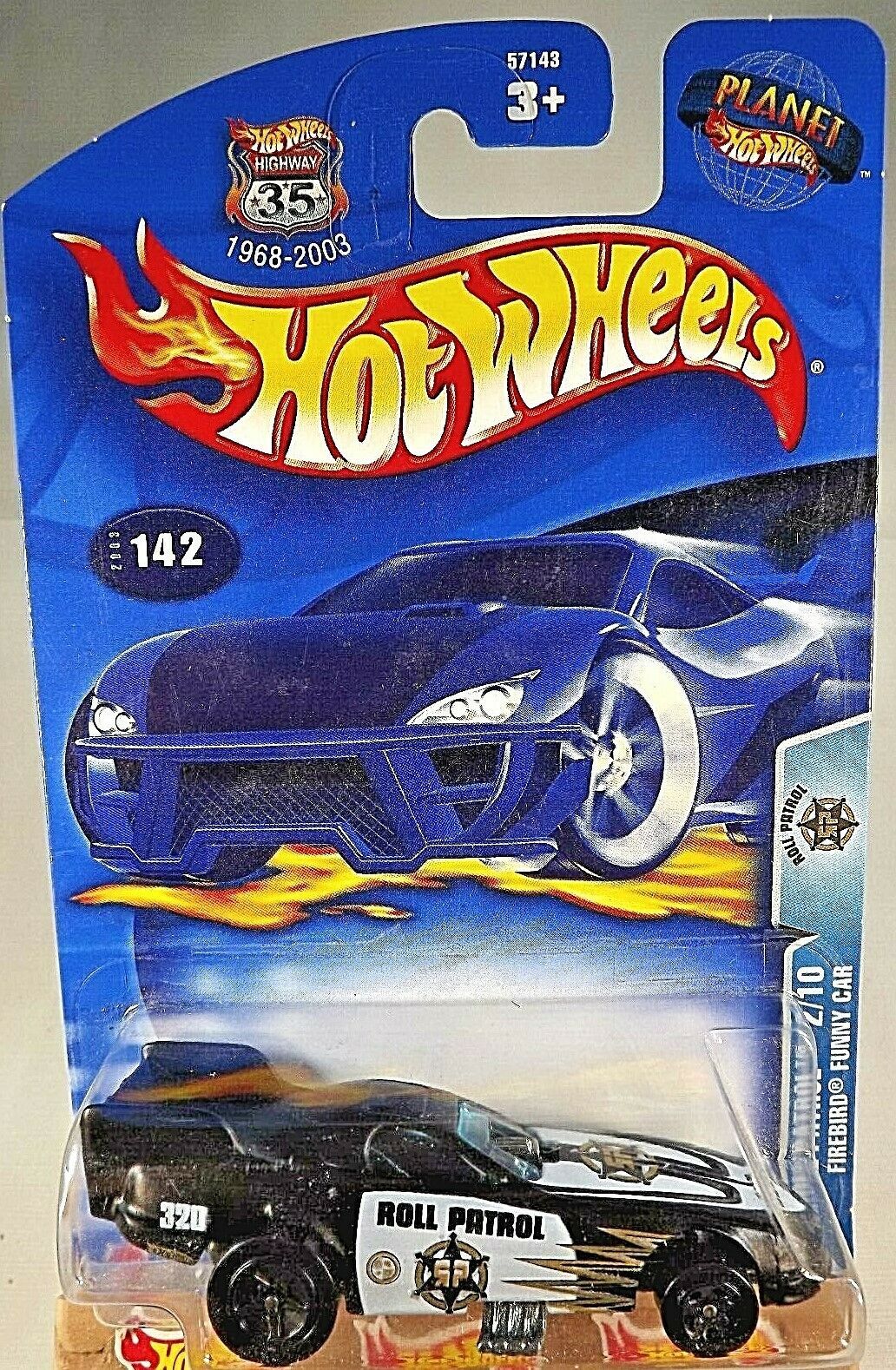 2003 Hot Wheels #142 Roll Patrol 2/10 FIREBIRD FUNNY CAR Black w/Black 5 Spokes