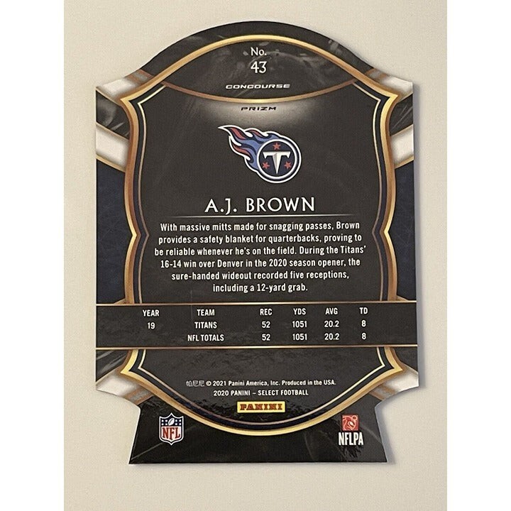 - 2020 Panini Select - A.J. Brown NFL Tennessee Titans #43 - Blue Die Cut Football