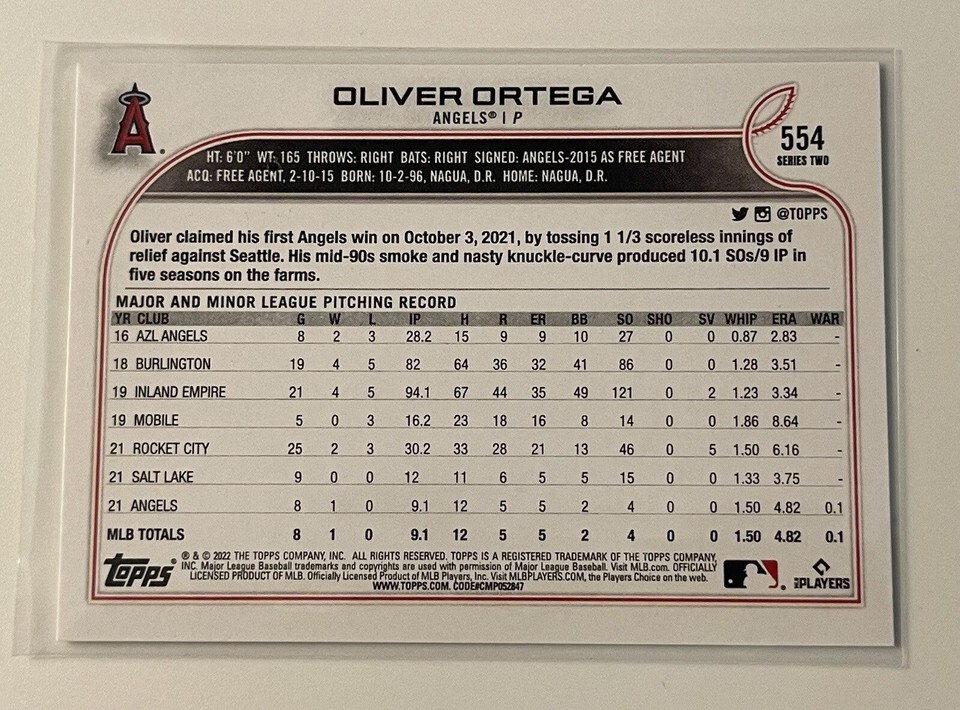 - 2022 Topps Series 2 Oliver Ortega RC - MLB Rookie - Los Angeles Angels Card #554
