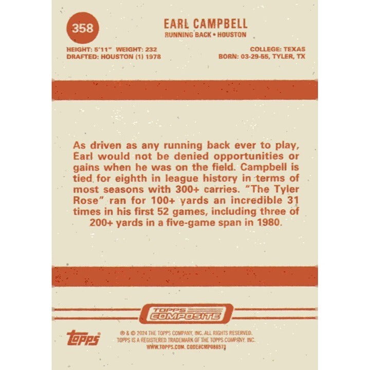 - 2023 Topps Composite - NFL Football - Earl Campbell - Houston Oilers - Card #358