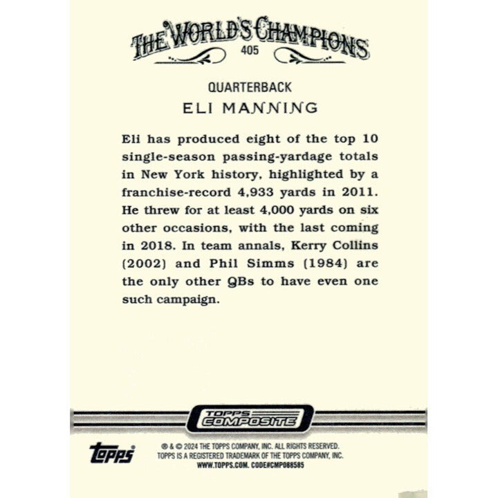 2023 Topps Composite - NFL Football - Eli Manning - New York Giants QB Card #405