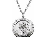 Sterling Silver 25MM Round Saint Christopher Medal 24 Inch Necklace